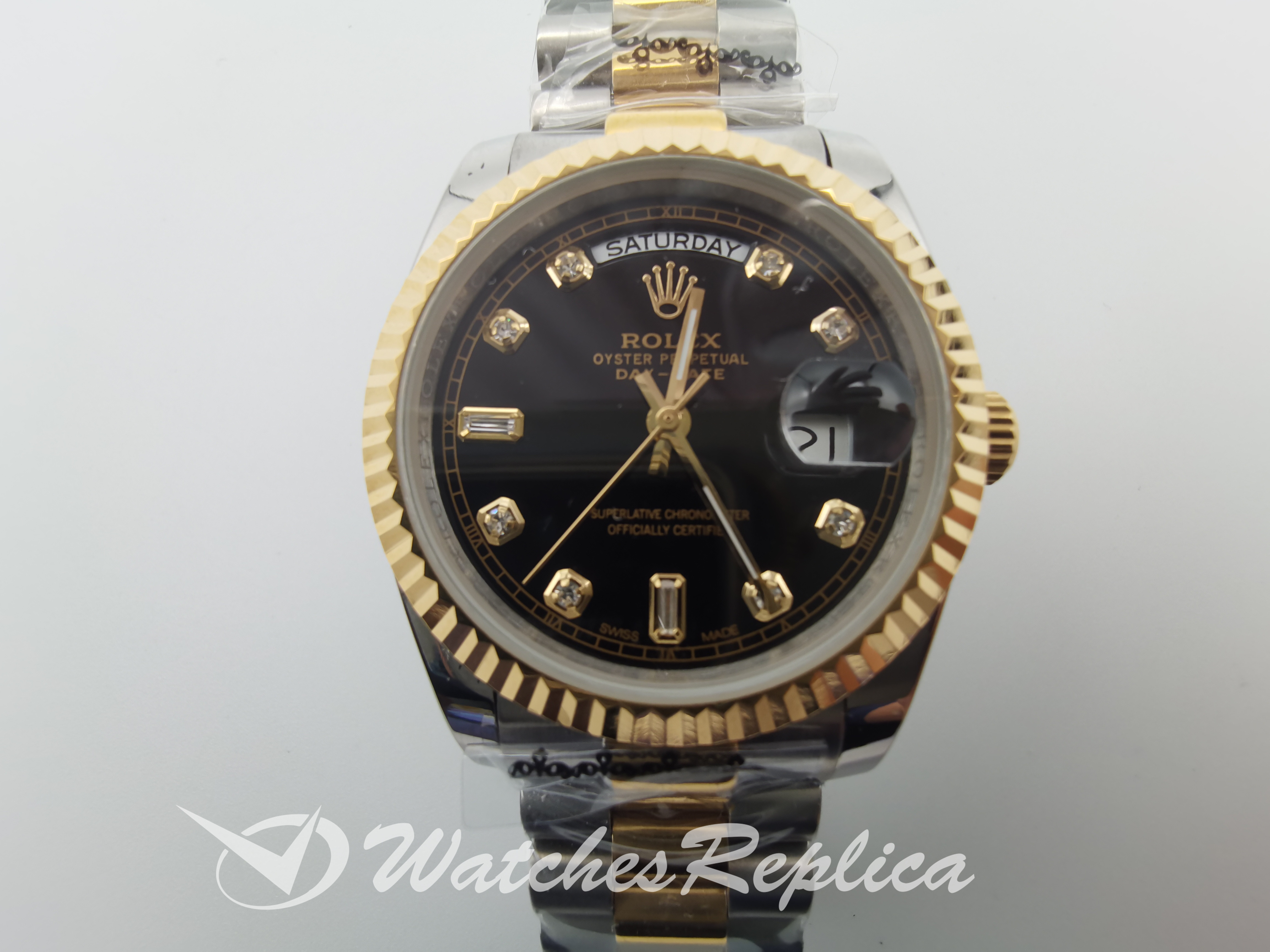 Rolex Day-Date 118238 36MM en acier inoxydable et cadran noir pour hommes Réplique Montre