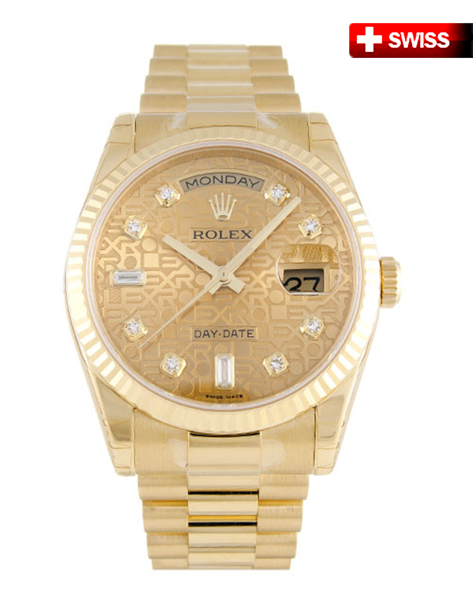 Rolex Day Date Automatique Réplique Montre Caractéristiques de la cadran en diamant Champagne de boîtier en or jaune 36MM